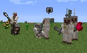 Idle Armored Golems will sit and stand and also converse with other Armored Golems using iage bubbles. They will mount any cow or pig in range as a priority. Mounted Armored Golems have increased movement speed. These mobs use the same AI as the Better Dungeons Walker and have many similar attacks and behaviours, such as defending with a shield and sneaking while aiming bows,